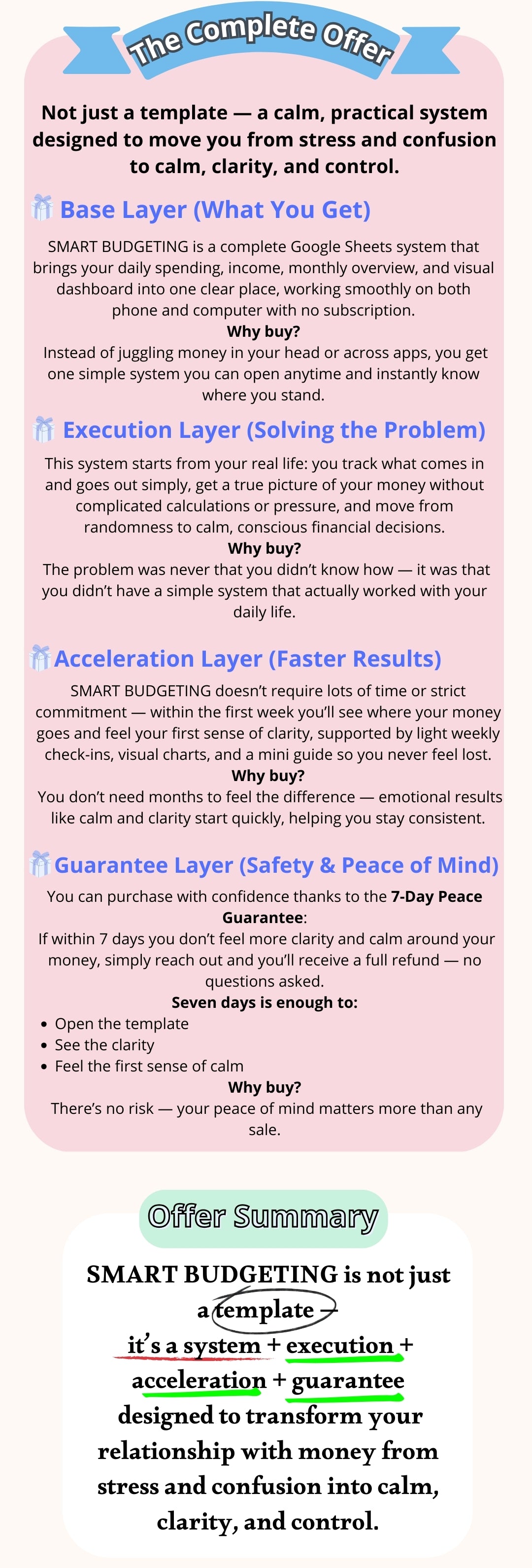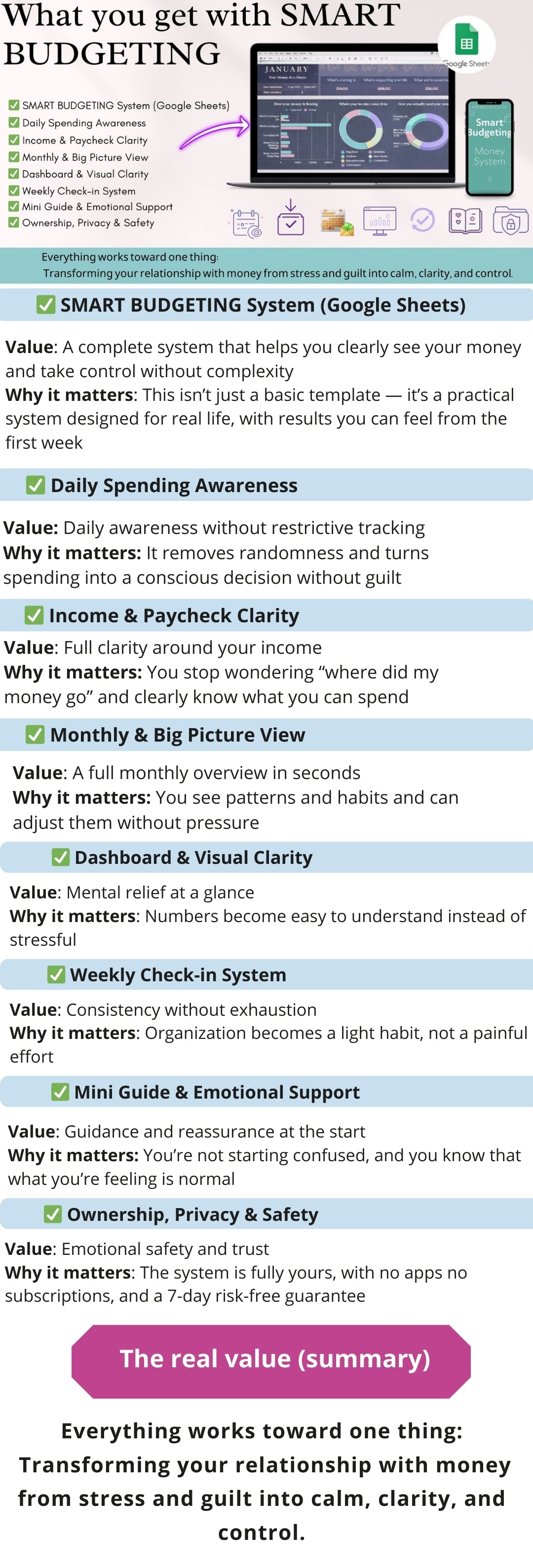“I used to feel anxious opening my banking app. After moving everything into SMART BUDGETING, I finally saw the full picture. It feels calm — not overwhelming.”